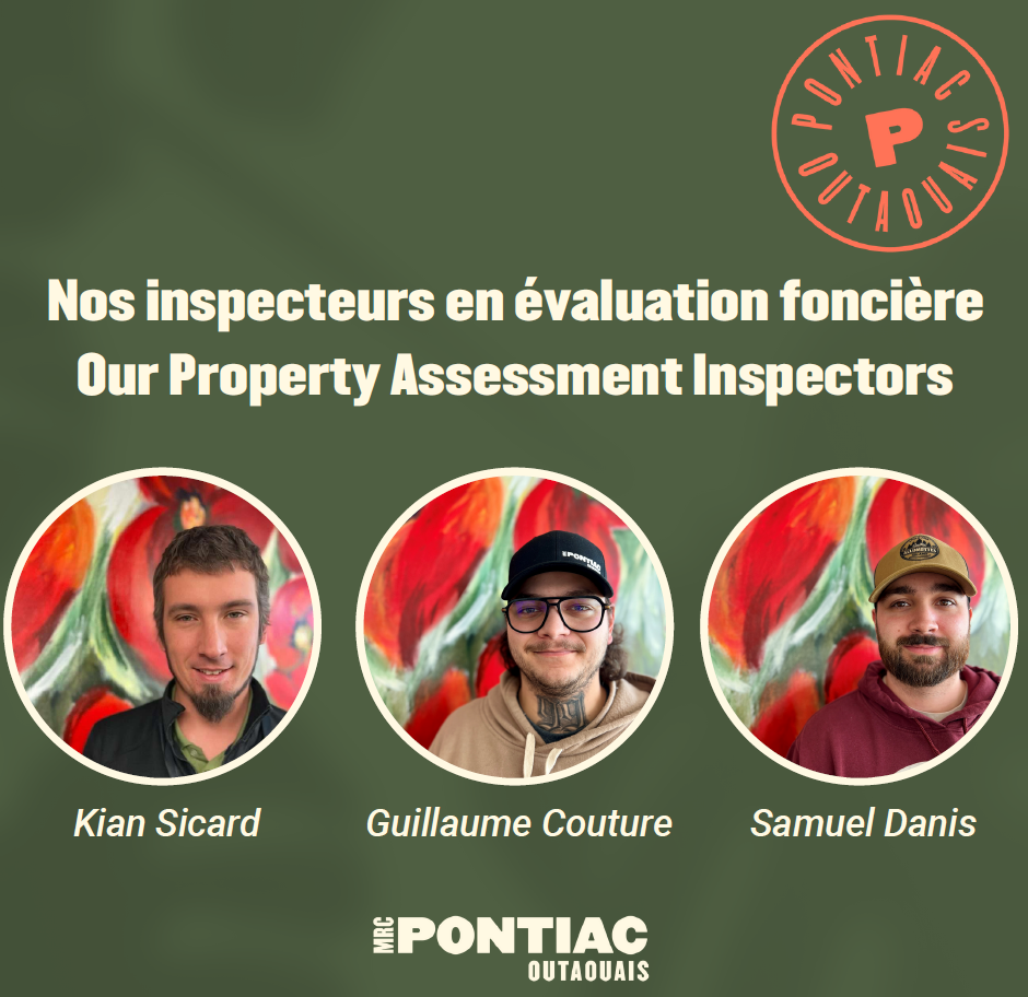 Les inspecteurs d’évaluation foncière de la MRC Pontiac feront des visites à domicile au cours des prochaines semaines dans notre municipalité. Nous vous demandons de bien vouloir les accueillir sur votre propriété pour faire leur travail. Merci pour votre collaboration